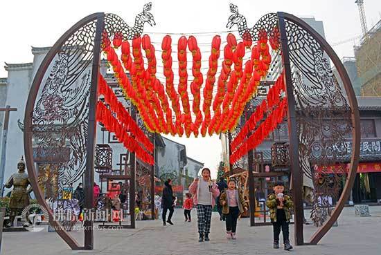 連日來,宿城喜迎新春的氛圍漸濃,處處洋溢著歡樂祥和的氣息。圖為宿馬園區(qū)一處商業(yè)場所里張燈結(jié)彩,游客們興致勃勃地品美食,賞美景。記者 王明輝 攝
