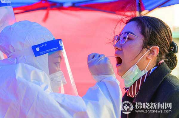 3月17日,在埇橋區(qū)三里灣街道紡織路社區(qū)采樣點,醫(yī)務(wù)人員對社區(qū)居民進行咽拭子采樣。為應對當前疫情防控復雜嚴峻形勢,快速排除風險隱患,守護人民群眾健康安全,埇橋區(qū)在全區(qū)范圍內(nèi)分區(qū)域、分時段開展核酸檢測。記者 董虎 攝
