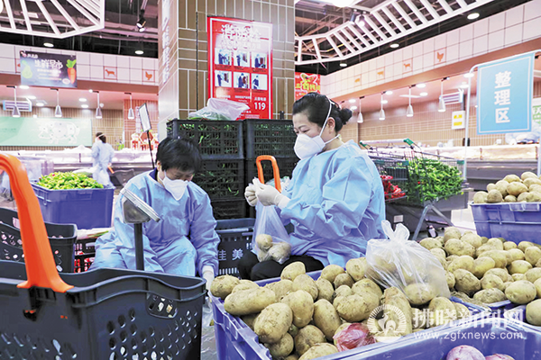 7月7日,泗縣佳美超市的工作人員根據(jù)線上訂單分揀商品。連日來,泗縣把保障群眾生產(chǎn)生活擺在突出位置,積極調(diào)配各類生活必需品,建立物資保障配送體系,實(shí)行貨源日報(bào)監(jiān)測機(jī)制,組織協(xié)調(diào)保供企業(yè)、社區(qū)服務(wù)等各個(gè)環(huán)節(jié)。目前,8家大型商超和15家較大商超全部開啟保供模式,小型生鮮商超已啟用60個(gè),基本形成覆蓋城鄉(xiāng)的保供網(wǎng)絡(luò),切實(shí)保障百姓生活秩序平穩(wěn)有序。 記者 蘇洋 攝