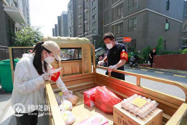 7月12日,在泗縣虹城街道四里橋社區(qū)阜康御龍公館小區(qū),社區(qū)志愿者根據(jù)訂單分揀配送菜品。該小區(qū)物資保障組每天都會(huì)通過微信群發(fā)布當(dāng)日菜單,居民根據(jù)自家需求,選擇所需菜品,經(jīng)過統(tǒng)計(jì)匯總后,由小區(qū)物資保障組與保供超市對(duì)接,消毒后送菜上門,確保群眾吃上放心菜安全菜。據(jù)悉,小區(qū)居民居家隔離期間,泗縣當(dāng)?shù)爻浞终{(diào)度各種力量,確保隔離期間居民的日常所需得到滿足。記者 蘇洋 攝