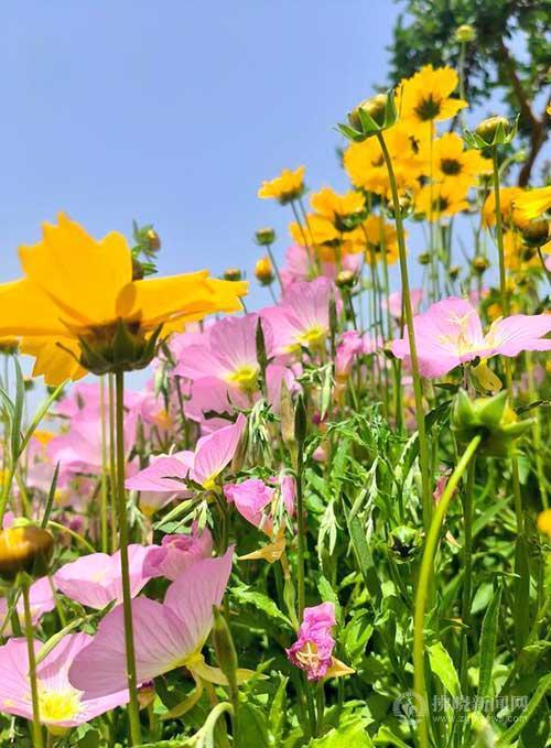 日前,市民在位于宿城新汴河北堤路的宿州中華珍奇紫薇文化園里賞花。初夏時節(jié),紫薇園里的月見草、金雞菊等各色花卉競相綻放,形成一片花的海洋,吸引眾多市民前往拍照打卡。 記者 馬峰 攝