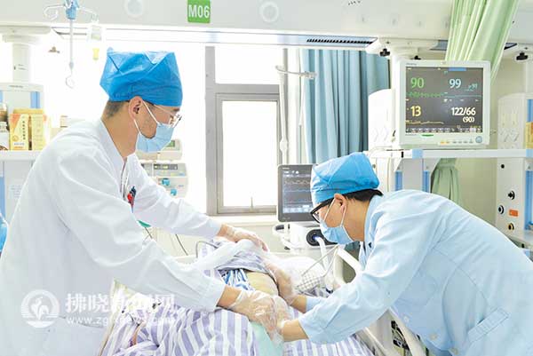 說(shuō)話間,一位患者突然出現(xiàn)血氧飽和度急劇下降,情況危急,顧陳峰和同事們迅速協(xié)助醫(yī)生氣管插管,并準(zhǔn)備呼吸機(jī)等,經(jīng)過(guò)10幾分鐘的搶救,患者轉(zhuǎn)危為安。在ICU里,這樣的場(chǎng)面經(jīng)常在上演,這群白衣天使隨時(shí)在為患者生的希望戰(zhàn)斗。