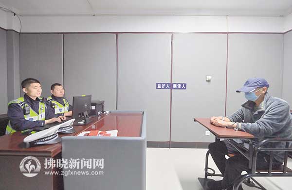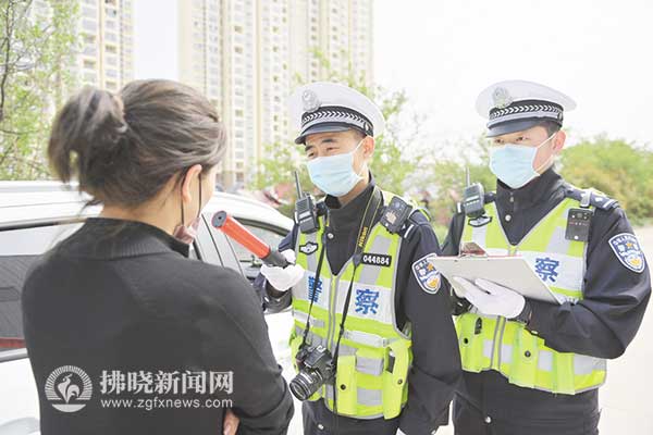 4月27日,張恒菖(左)對肇事駕駛員進(jìn)行酒精檢測。