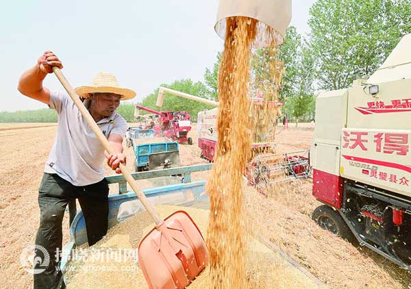 “今年小麥獲得這樣可喜的收成,與我市大力實(shí)施科技強(qiáng)農(nóng)、機(jī)械強(qiáng)農(nóng)有很大關(guān)系。自小麥播種以來(lái),我市1000多名科技特派員奔赴生產(chǎn)一線服務(wù)農(nóng)業(yè)生產(chǎn),70多萬(wàn)臺(tái)(套)農(nóng)機(jī)奮戰(zhàn)‘三夏’,小麥機(jī)收率達(dá)99%,有了科技、有了新式機(jī)械,農(nóng)民增收是必然的?!笔修r(nóng)業(yè)農(nóng)村局副局長(zhǎng)趙曉春向記者介紹,今年我市小麥生產(chǎn)高產(chǎn)典型多,天氣條件總體有利,無(wú)明顯自然災(zāi)害,產(chǎn)量結(jié)構(gòu)優(yōu)勢(shì)得到充分發(fā)揮。調(diào)查發(fā)現(xiàn),今年麥穗中部小穗4粒的較多,甚至出現(xiàn)5粒、6粒的小穗,為穗粒數(shù)的增加提供了有利條件。特別是今年各級(jí)黨委、政府十分重視以赤霉病為主的后期病蟲(chóng)害防治工作,各級(jí)財(cái)政投入資金達(dá)1.2億元,防治面積超過(guò)1400萬(wàn)畝次,小麥赤霉病防控成效顯著,小麥籽粒品質(zhì)明顯高于往年。