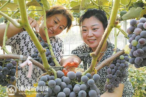 蕭縣葡萄王國農場的“陽光玫瑰”果實累累。