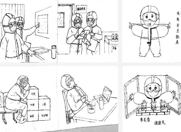 “85后”的王博,是宿州皖北煤電集團(tuán)總醫(yī)院胸外科主治醫(yī)師。醫(yī)院每年都要分配人員下鄉(xiāng)對口支援,前不久,王博被分配到宿州市看守所支援,為期半年。因疫情原因,進(jìn)入看守所要在酒店隔離一周。期間,他利用隔離酒店多余的衛(wèi)生卷紙,將自己曾經(jīng)在抗疫一線支援的瞬間和同事在泗縣支援的工作情形畫成漫畫,生動(dòng)描述了醫(yī)護(hù)人員抗擊疫情和全民抗疫的感人場景。
