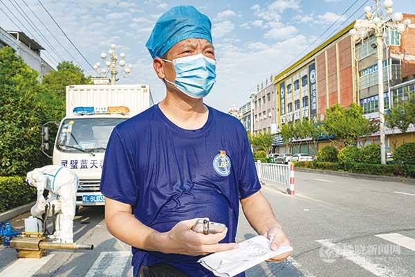“我們作為一支消殺小隊(duì),主要負(fù)責(zé)主城區(qū)重點(diǎn)區(qū)域消殺任務(wù)?!迸R危受命為主城區(qū)消殺隊(duì)長(zhǎng)的靈璧縣衛(wèi)生進(jìn)修學(xué)校教師、靈璧藍(lán)天救援隊(duì)副隊(duì)長(zhǎng)汪祥龍介紹。他帶領(lǐng)12名隊(duì)員,穿著密不透風(fēng)的防護(hù)服出入高風(fēng)險(xiǎn)區(qū),嚴(yán)格進(jìn)行終末消毒,每天消殺二三十個(gè)地點(diǎn)。“作為一名志愿者、一名黨員,能為疫情防控盡一份力,我感到非常自豪?!敝驹刚吖斡钫f(shuō)。