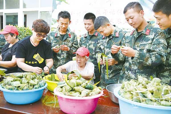 武警宿州支隊(duì)官兵與老人共度端午節(jié)。