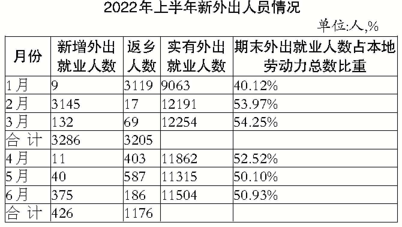 二季度末,靈璧縣10個(gè)行政村總?cè)丝?9990人,勞動(dòng)力22587人,占總?cè)丝诘?6.48%。季末實(shí)有外出就業(yè)11504人,占勞動(dòng)力總數(shù)的50.93%,環(huán)比、同比分別下降3.32和1.38個(gè)百分點(diǎn)。本期新返鄉(xiāng)1176人,環(huán)比減少2029人,下降63.31%;同比增加722人,增長(zhǎng)159.03%。新外出就業(yè)426人,環(huán)比、同比分別減少2860人和947人,分別下降87.04%和68.97%。3月份,新一輪疫情散發(fā),各地疫情反復(fù),4月和5月份,外出務(wù)工人員驟減,部分勞動(dòng)者選擇返鄉(xiāng)就業(yè)創(chuàng)業(yè)。6月份疫情得到有效控制,務(wù)工人員陸續(xù)外出就業(yè)(如下表所示)。