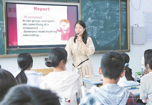 英語專業(yè)的她,不想延續(xù)過去那種“填鴨式”“滿堂灌”的教學(xué)方法,認(rèn)為讓學(xué)生說出來、走出去才是學(xué)好英語的重要手段,在她的潛心鉆研下,Interview and Speech(采訪與演講)這種創(chuàng)新教學(xué)形式出現(xiàn)在課堂上。學(xué)生們以小組為單位,在指定場景之下扮演采訪者與演講者,新奇的教學(xué)模式激發(fā)了學(xué)生的學(xué)習(xí)興趣,同時也將英語學(xué)習(xí)很自然地融入到生活中來,大大提升了學(xué)習(xí)效率。表現(xiàn)好的會獲得小禮物的獎勵,激發(fā)了學(xué)生們學(xué)習(xí)主動性。胡丹妹說:“新的教學(xué)方法還在不斷完善中,但可以看見的是學(xué)生興趣漸濃,課堂學(xué)習(xí)氛圍愉快活潑,這對學(xué)生的英語水平提高起到了明顯的效果?!睂τ谧约簞?chuàng)新的教學(xué)方法,胡丹妹信心滿滿。