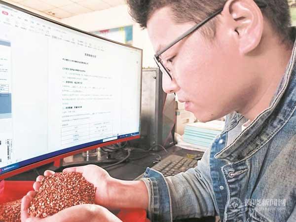 技術(shù)人員對照合同檢測高粱是否達(dá)標(biāo)。