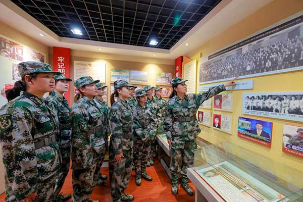 蘄縣鎮(zhèn)“十姑娘”民兵班接受國(guó)防教育。
