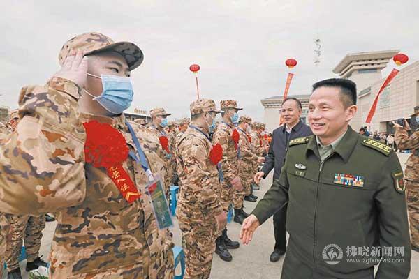 市領(lǐng)導(dǎo)同新兵握手送別。