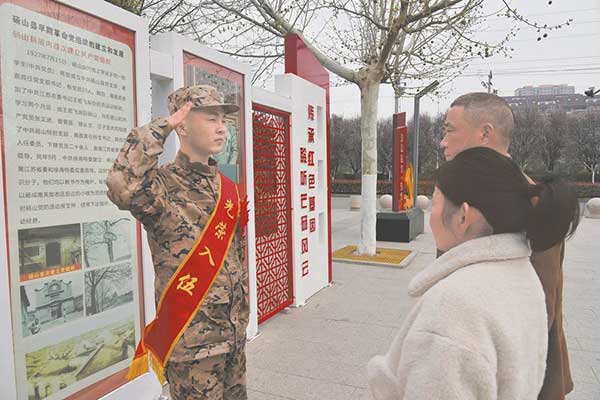 抗美援朝參戰(zhàn)老兵朱恒生為預(yù)定新兵講述戰(zhàn)斗故事。