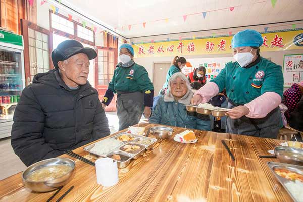 在靈璧縣大路鎮(zhèn)蘇宅村老年食堂內(nèi),轄區(qū)老年人正在用餐(資料圖片)。 記者 蘇洋 攝