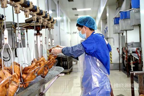劉老二燒雞廠工人正在進(jìn)行產(chǎn)品冷包裝工作。