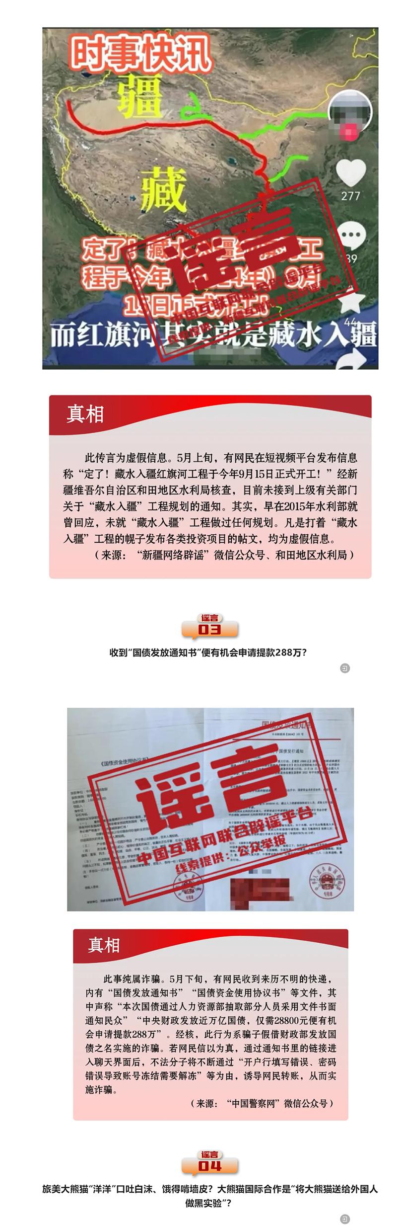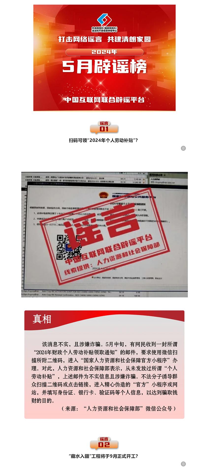 打擊網(wǎng)絡謠言 共建清朗家園 中國互聯(lián)網(wǎng)聯(lián)合辟謠平臺2024年5月辟謠榜