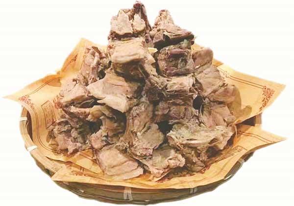 欄桿牛肉選用1至3年黃淮平原上的黃牛為原料,經(jīng)過宰、泡、搓、洗、漂、鹵、晾等工序,配以36味作料,最后通過一道特殊工序使每一味都能均勻滲透肉中,肉質(zhì)鮮香,爛而不膩。