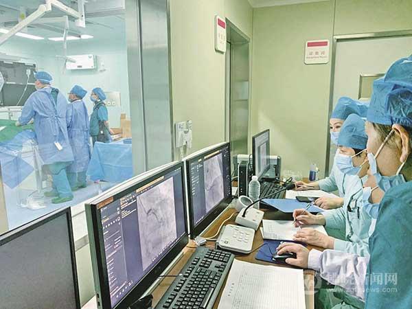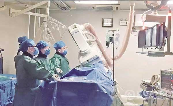 急診科主任程仁力(右一)帶領團隊為患者做心臟介入手術(shù)。