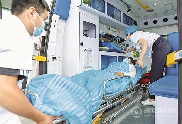 早晨8點,是醫(yī)院交接班時間,宿州市立醫(yī)院急診科主任程仁力按照慣例主持了科室晨會,聽取各部門工作匯報、病人情況,提醒醫(yī)護人員醫(yī)療安全、用藥規(guī)范。晨會結(jié)束后,大家迅速返回工作崗位。就在此時,急診室大樓外一輛疾馳而來的救護車停在門口,4位醫(yī)護人員看護著病人,推著自動上車擔架飛奔向急診科搶救。