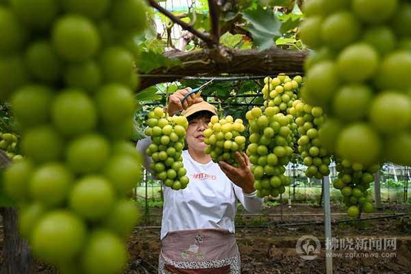 玄廟鎮(zhèn)古黃新村果農(nóng)采摘陽光玫瑰葡萄。