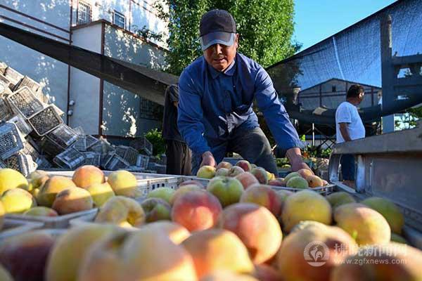 浙江客商(左一)在碭城鎮(zhèn)西南門村收購鮮桃。