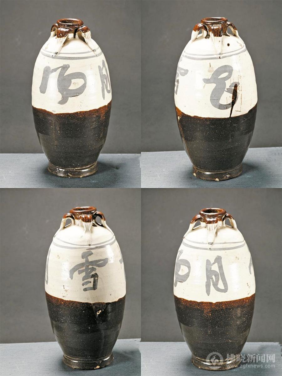 水運(yùn)是古代最重要的交通方式。展柜里,大運(yùn)河宿州段出土的瓷器、陶器、骨器等珍貴文物,見證了那段“槳聲燈影、商賈云集”的繁華歲月。其中鎮(zhèn)館之寶之一的“風(fēng)花雪月”四系瓶,出土于埇橋小隅口,是金代磁州窯系產(chǎn)品,現(xiàn)為國家一級文物。此瓶肩部剔刻纏枝花圖案,線條流暢、大氣,腹部開光,內(nèi)行草書“風(fēng)花雪月”四字,造型古樸挺拔。作為一件盛酒器,“風(fēng)花雪月”四系瓶完美結(jié)合了書法藝術(shù)、酒文化和制瓷工藝,是一件不可多得的瓷器精品。