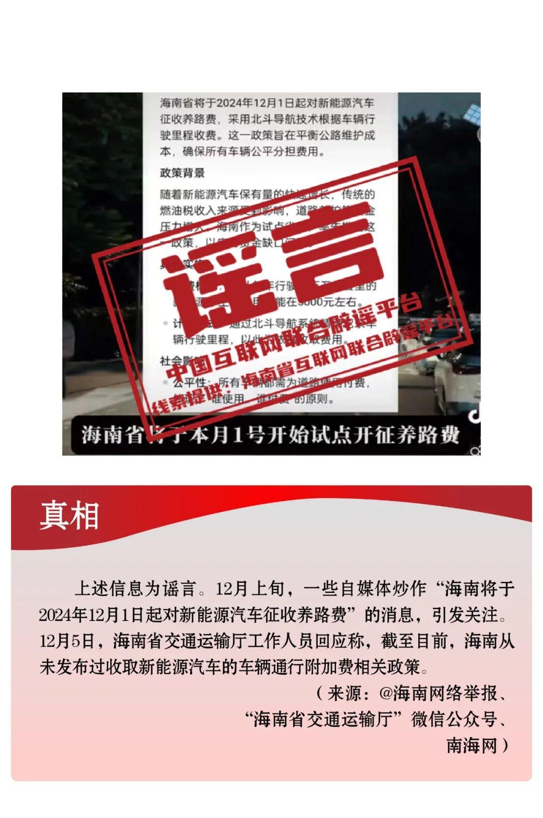 海南12月1日起對新能源汽車征收養(yǎng)路費?