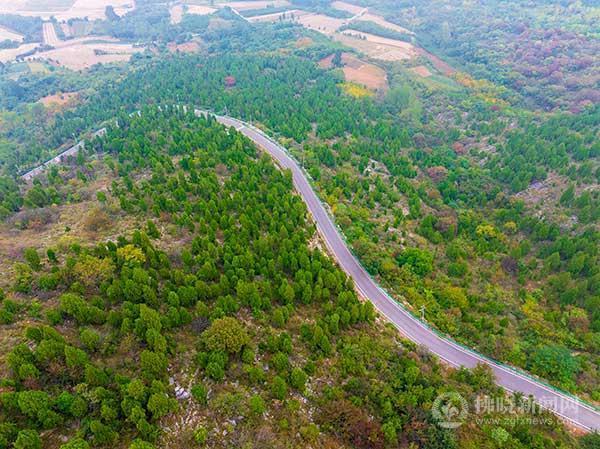航拍的埇橋區(qū)夾溝鎮(zhèn)草場村草場盤山公路。