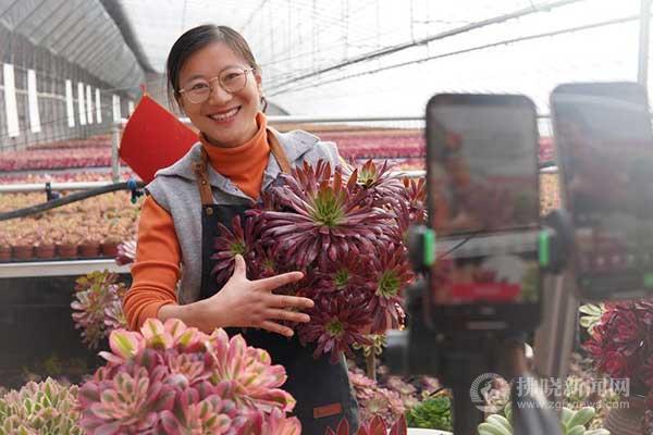 近日,記者走進(jìn)靈璧縣博聞園藝工作室5號(hào)培育大棚,看到主播們正熟練地進(jìn)行線上直播銷售。他們身邊擺放著造型不一、色彩豐富的多肉植物,吸引了不少網(wǎng)友下單購(gòu)買。下播后工人們將訂單有序地包裝、發(fā)貨,一片繁忙景象。