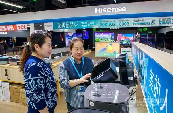 4月7日,在宿城東昌路一超市內(nèi),導購員為顧客推介商品,介紹“以舊換新”相關(guān)補貼政策。隨著我市“以舊換新”政策深入推進,多家大型超市聯(lián)合家電、家居品牌,推出“以舊換新”促銷活動,吸引眾多市民前來選購。據(jù)了解,一季度,全市共發(fā)放消費券1050萬元,核銷980萬元,涵蓋汽車、家電、家裝廚衛(wèi)、數(shù)碼產(chǎn)品、電動自行車等多領(lǐng)域。記者 蔣幫煜 攝