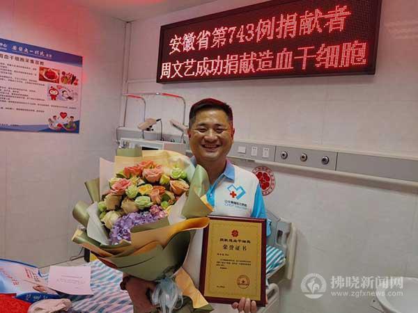 今年48歲的周文藝,就職于宿州市第二初級中學(xué)總務(wù)處。多年來,他扎根學(xué)校后勤崗位,為學(xué)校的穩(wěn)定運(yùn)行和教學(xué)質(zhì)量的提升提供了堅(jiān)實(shí)有力的支撐。在工作之余,他經(jīng)常參加公益活動(dòng)。2020年的一天,周文藝看到了一個(gè)關(guān)于造血干細(xì)胞捐獻(xiàn)的紀(jì)錄片。血液病患者渴望的眼神,讓他深受觸動(dòng)。特別是看到一些患者通過造血干細(xì)胞移植手術(shù)獲得新生后,讓周文藝意識(shí)到:原來捐獻(xiàn)者的一次小小的決定,就能成為他人生命中的曙光。不久后,周文藝在參加無償獻(xiàn)血活動(dòng)時(shí),主動(dòng)留下了8毫升的血樣,并填寫了《造血干細(xì)胞捐獻(xiàn)者登記表》。