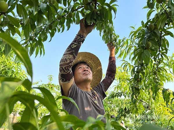 日前,靈璧縣虞姬鎮(zhèn)中桃種植園內,果農正在對桃樹進行精細疏果管理。該園占地100余畝,共種植5個優(yōu)質蜜桃品種,預計6月中旬陸續(xù)成熟上市,總產量可達60萬斤。目前,園區(qū)每天用工30余人,既帶動當?shù)厝罕娫诩议T口就業(yè),也為鄉(xiāng)村振興注入持續(xù)動力。鄭萬亮 攝