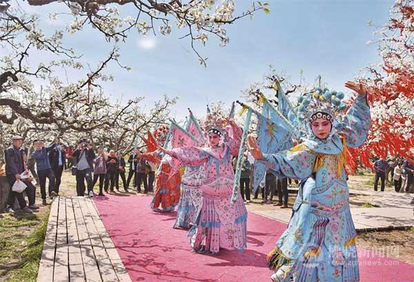 碭山梨花節(jié)梨樹王景區(qū)內(nèi)戲曲表演。