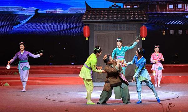 多元融合在演出中魅力彰顯。小提琴雙重奏《梁祝》,用西洋樂(lè)器演繹東方愛(ài)情傳奇,悠揚(yáng)旋律穿越古今;相聲《歡聲笑語(yǔ)》以幽默詼諧的表演,拉近了觀眾距離;紹劇《背妻觀燈》則以生動(dòng)的劇情與活潑的肢體語(yǔ)言,傳遞出市井生活的煙火溫情。汴水悠悠流淌千年,花鼓聲聲唱出民情,群舞《汴水花鼓情》,讓觀眾在鏗鏘的鼓點(diǎn)和歡快的節(jié)奏中,感受宿州兒女的熱情與豪邁。