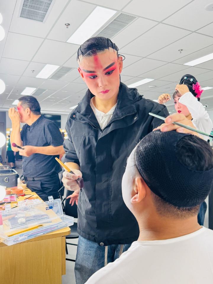 7日17時許,演員們在緊張化妝中。