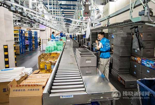 10月10日,宿州吾悅廣場(chǎng)盒馬鮮生員工在倉(cāng)儲(chǔ)中心“線上+線下”智慧配送流水線作業(yè)。今年以來(lái),我市以培育零售新業(yè)態(tài)為抓手,通過(guò)首店經(jīng)濟(jì)、商文旅融合以及智慧配送等模式,不斷創(chuàng)新消費(fèi)新場(chǎng)景,打造城市消費(fèi)新地標(biāo),推動(dòng)商貿(mào)零售業(yè)向新模式迭代升級(jí)。記者 馬峰 攝