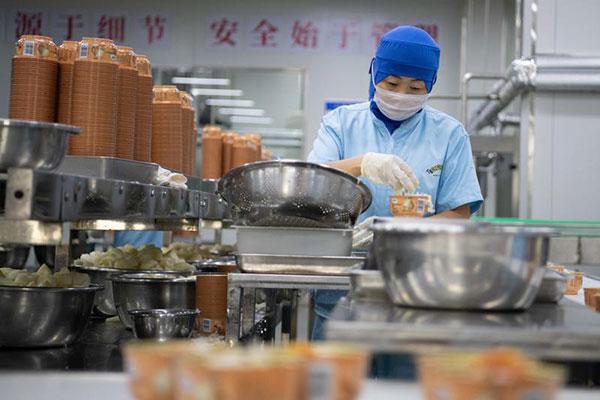 日前,在安徽龍潤堂生物科技有限公司內(nèi),工作人員在小吊梨湯生產(chǎn)車間作業(yè)。 張端 攝