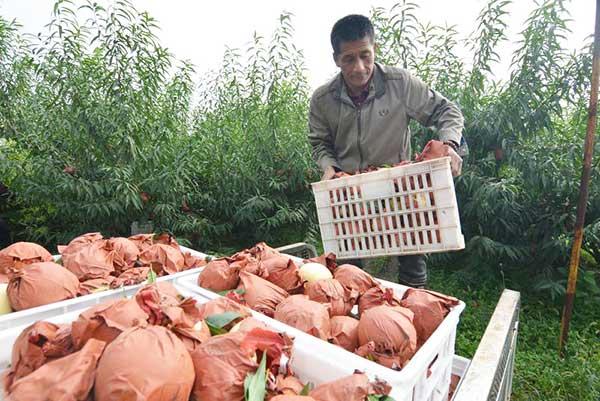 近日,埇橋區(qū)順河鎮(zhèn)馬場村鑫棚家庭農(nóng)場雪桃喜獲豐收,果農(nóng)忙著采收供應(yīng)市場。近年來,馬場村大力發(fā)展雪桃種植,雪桃因成熟晚、口味佳,在秋季水果市場供不應(yīng)求,為當(dāng)?shù)剞r(nóng)民帶來可觀經(jīng)濟收入。特約攝影 祝家剛 攝