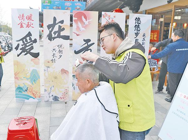 泗州義工協(xié)會(huì)志愿者為現(xiàn)場(chǎng)群眾免費(fèi)理發(fā)。