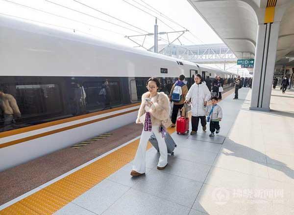 12月30日,G9529次列車從合新高鐵泗縣東站開出,旅客準(zhǔn)備上車。 記者 蘇洋 蔣幫煜 攝