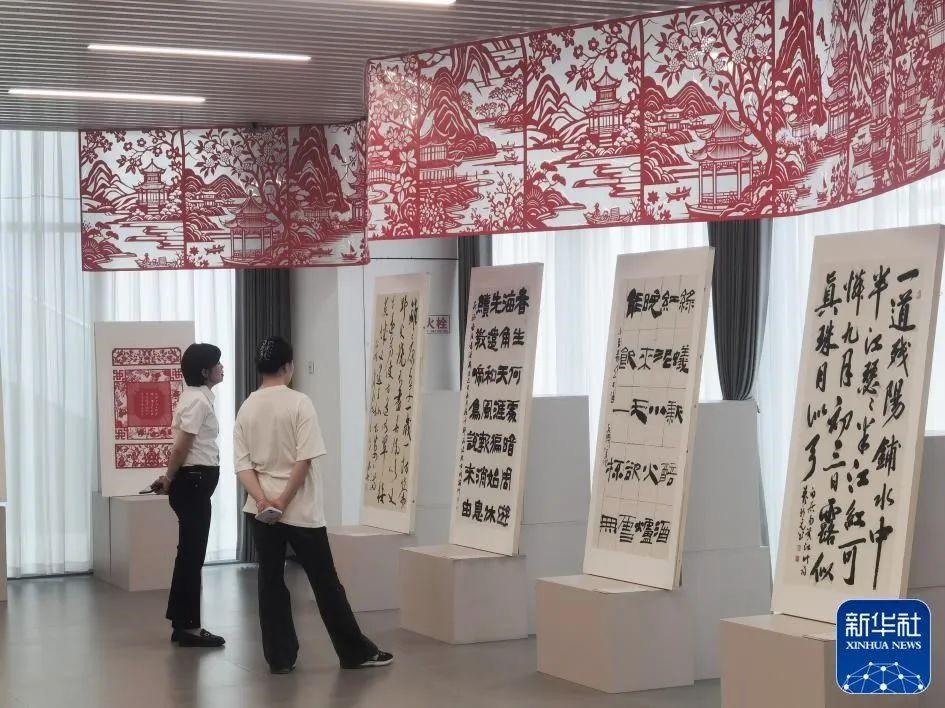 白居易創(chuàng)意書畫及剪紙作品展。新華社客戶端發(fā)(詹燕南 攝)