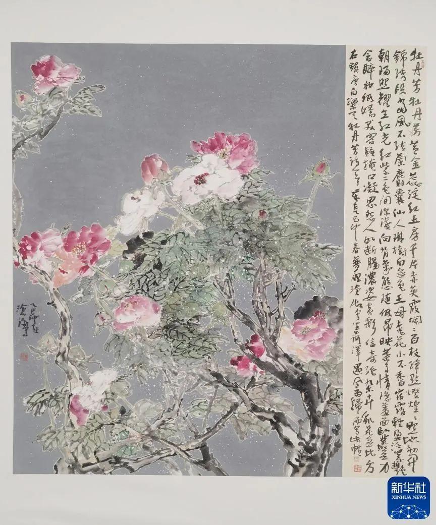書畫名家尹滄海作品《牡丹芳》。新華社客戶端發(fā)(詹燕南 攝)