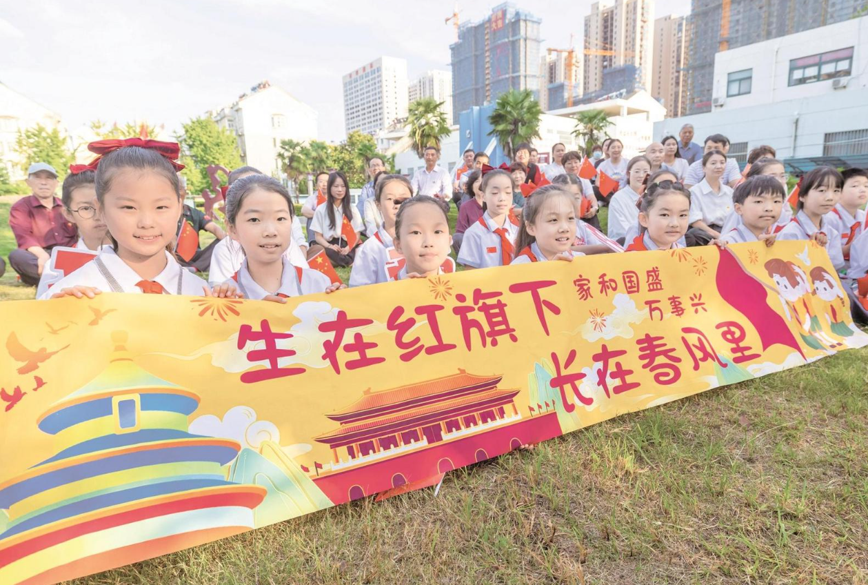 埇橋區(qū)西關(guān)街道環(huán)宇社區(qū)在市港利小學(xué)開(kāi)展“生在紅旗下 長(zhǎng)在春風(fēng)里”主題活動(dòng)。記者 蘇洋 攝