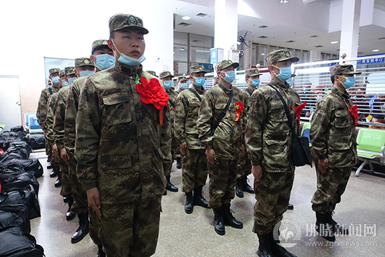 拂曉新聞網(wǎng)--拂曉報(bào)訊 宿州好兒女,踴躍當(dāng)兵去。3月18日晚,在宿州火車站候車室里,40余名新兵身著迷彩服、胸戴大紅花,個(gè)個(gè)身姿挺拔、軍容嚴(yán)整,他們帶著家鄉(xiāng)人民的祝福和期盼,離開家鄉(xiāng)奔赴軍營。