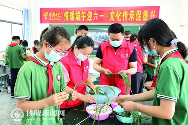 在“六一”兒童節(jié)和端午節(jié)來臨之際,中國電信宿州分公司組織開展“情暖端午迎六一,文化傳承促振興”主題志愿活動,為定點幫扶的碭山縣林屯村的孩子們包粽子、講傳統(tǒng),引導孩子們了解傳統(tǒng)、認知傳統(tǒng)、弘揚傳統(tǒng),感受優(yōu)秀傳統(tǒng)文化的魅力,進一步培養(yǎng)愛國情懷,共樹文明新風。呂虎 攝