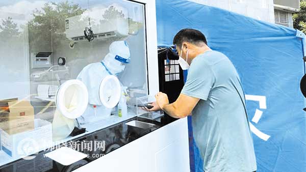 醫(yī)護(hù)人員在為泗縣觀湖苑小區(qū)居民核酸采樣