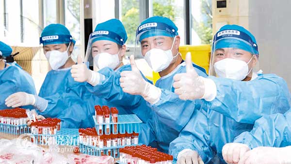 核酸檢測工作人員在認(rèn)真記錄樣本信息