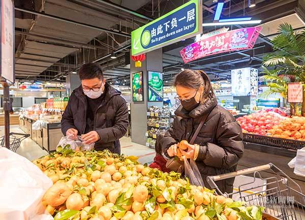 春節(jié)臨近,年貨采購(gòu)進(jìn)入高峰期,我市各大商超備足貨品,消費(fèi)市場(chǎng)購(gòu)銷(xiāo)兩旺,節(jié)日氛圍日漸濃郁。記者 蘇洋 攝