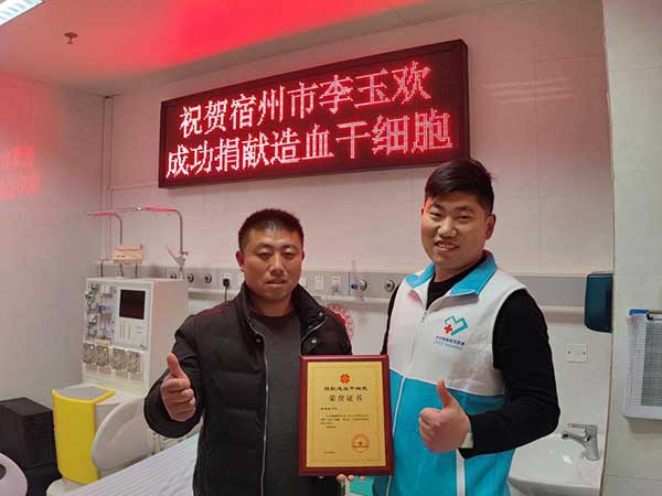 2月22日中午,宿州志愿者李玉歡在哥哥李玉斗的陪伴下,來(lái)到安徽醫(yī)科大學(xué)第一附屬醫(yī)院北區(qū),捐出207毫升造血干細(xì)胞混懸液,成為安徽省第487例造血干細(xì)胞捐獻(xiàn)者。就在8年前,李玉斗也曾為一名素不相識(shí)的江蘇患者捐獻(xiàn)了造血干細(xì)胞,是我市首位實(shí)現(xiàn)造血干細(xì)胞捐獻(xiàn)的農(nóng)民。當(dāng)時(shí)捐獻(xiàn)時(shí),陪伴在他身邊的是弟弟李玉歡。這一次,兄弟倆互換身份,為的是同一個(gè)目標(biāo):為他人生命續(xù)航。